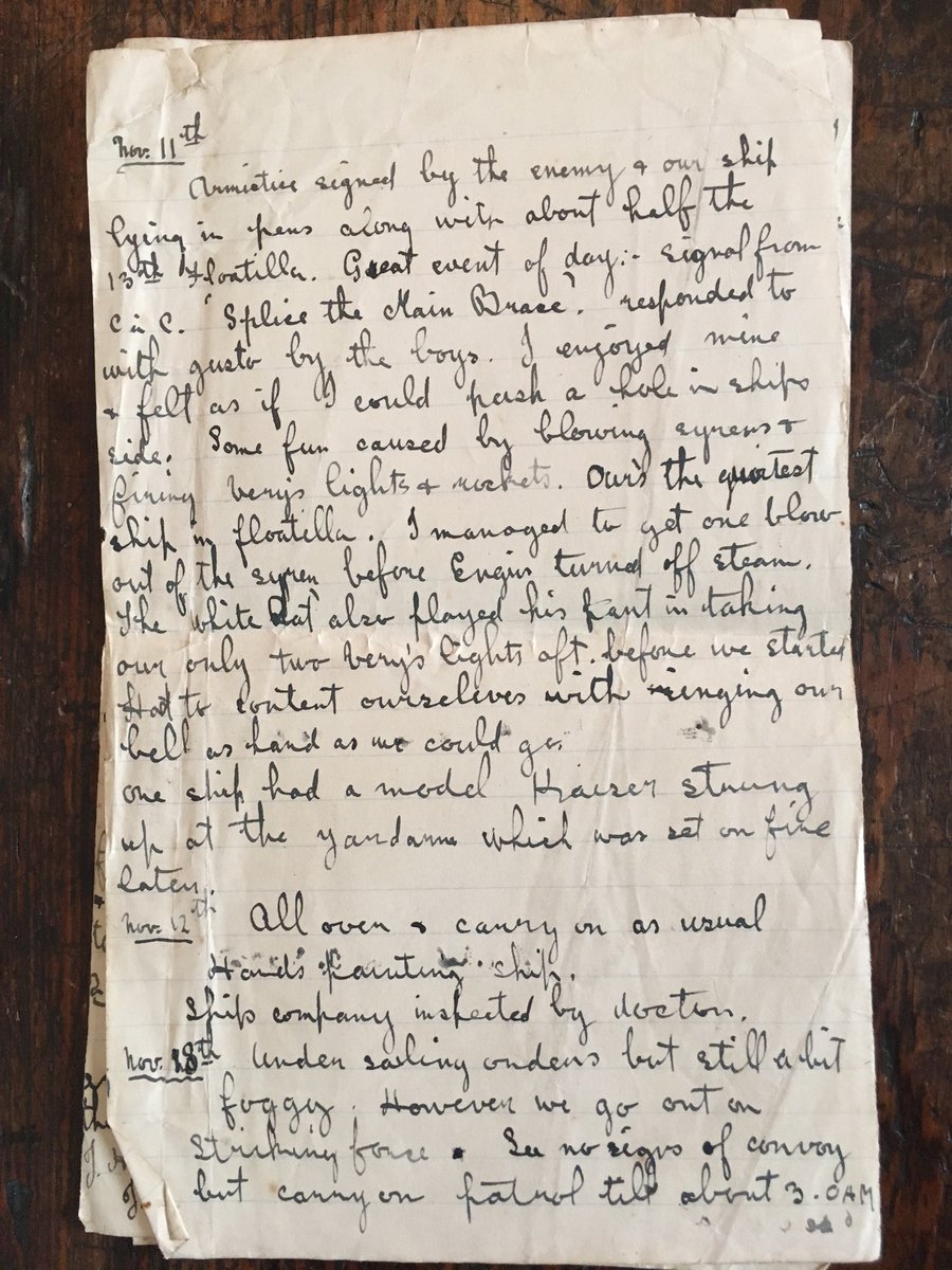 1/2 A few weeks ago, among my late mother’s papers, I found this handwritten diary which was started on #ArmisticeDay, 100 years ago today. It turns out to have been written by my grandfather, a naval trainee at the time – and an eyewitness to the surrender of the German fleet.