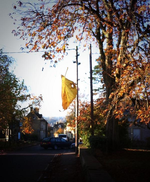 Alas it’s hard to capture the simple magic of a leaf in mid-air, suspended by a spider’s filament about 8 feet long