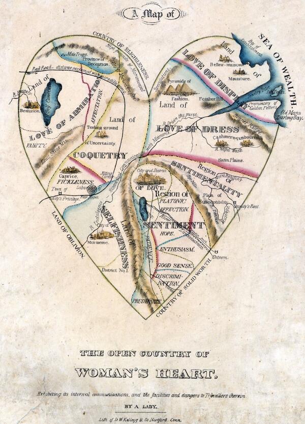 Hmmm. RT @PublicDomainRev: A map depicting “The Open Country of Woman’s Heart” (1830s) bit.ly/1f1N3xT