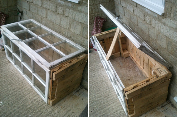 My new cold frame, made from pallets and old windows (cc @julietk).